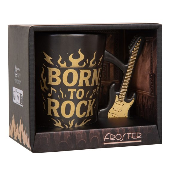 Gotowy do wręczenia na prezent bez konieczności dodatkowego pakowania. Napis na produkcie: BORN TO ROCK. Produkt pokryty matową farbą.