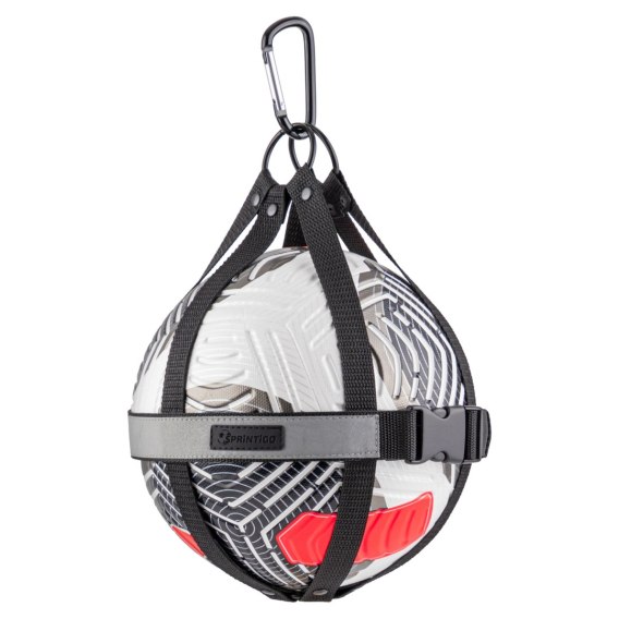 Uniwersalny uchwyt do noszenia piłki przypiętej do plecaka lub torby sportowej.